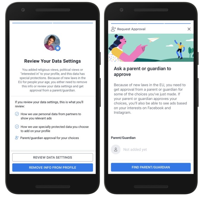 Ο GDPR πρόκειται να εφαρμόσει νέους κανονισμούς για το πώς αντιμετωπίζονται οι έφηβοι, συγκεκριμένα οι χρήστες ηλικίας μεταξύ 13 ετών (η ελάχιστη ηλικία που απαιτείται για την εγγραφή στο Facebook) και 15. Εάν οι χρήστες αυτής της ηλικιακής κατηγορίας έχουν μοιράσει τις θρησκευτικές ή πολιτικές τους απόψεις ή τις σεξουαλικές τους προτιμήσεις, το Facebook θα απαιτεί είτε να τις καταργήσει είτε να πάρει τη γονική συναίνεση για να τις διατηρήσει. Αλλά το σύστημα της επαλήθευσης αυτής της γονικής συγκατάθεσης μοιάζει λίγο αδύναμο, αφού οι χρήστες απλώς θα επιλέγουν έναν από τους φίλους τους στο Facebook ή θα δίνουν μια διεύθυνση ηλεκτρονικού ταχυδρομείου, από όπου θα ζητείται συγκατάθεσή για το «παιδί» να αφήνει ελεύθερες τις ευαίσθητες πληροφορίες.