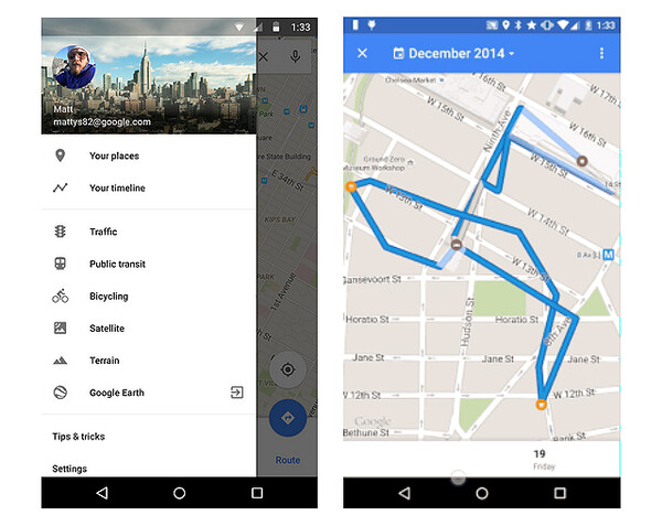 Σύμφωνα με ανακοίνωση της εταιρείας, το Google Maps, κάνει σιγά σιγά διαθέσιμο για όλους του χρήστες του που έχουν κάνει log in με τα στοιχεία τους κι επιτρέπουν να καταγράφεται η τοποθεσία τους, μια νέα ενότητα, ονόματι "Your Timeline", όπου όυτε λίγο ούτε πολύ, σας δείχνει με απίστευτη λεπτομέρεια όλες τις τοποθεσίες που έχετε επισκεφθεί από τότε που κάνετε χρήση της εφαρμογής χαρτών της.