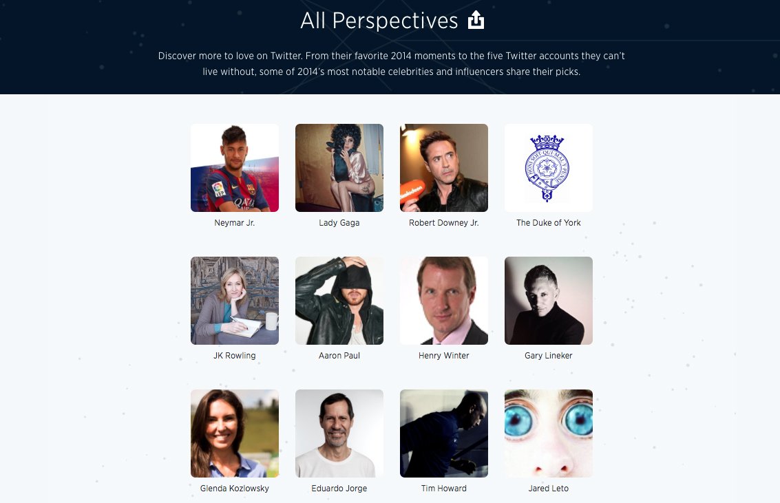 Επιπρόσθετα, η σελίδα του microsite, με τίτλο "Perspectives", συμπεριλαμβάνει τα Tweets μερικών από τις πιο επιδραστικές προσωπικότητες του κόσμου που διαθέτουν λογαριασμό στην πλατφόρμα και τον τρόπο με τον οποίον κατέγραψαν ή σχολίασαν τα γεγονότα της χρονιάς που πέρασε, μέσω των αναρτήσεών τους.