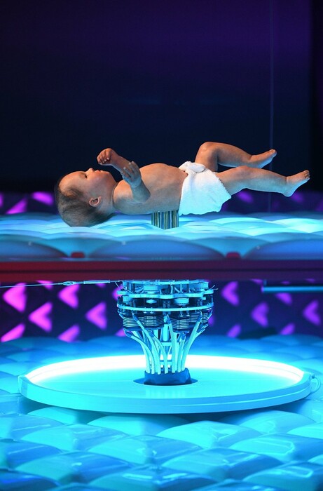 Tο πρώτο πράγμα που αντικρίζουν οι επισκέπτες της έκθεσης των ρομπότ στο Μουσείο Επιστημών του Λονδίνου είναι ένα βρέφος «καρφωμένο» σε ένα τοίχο με τα χέρια του τεντωμένα στον αέρα και μια συστάδα καλωδίων να εξέχουν από την πλάτη του.