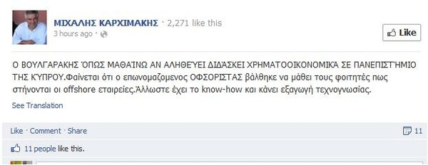 Μια ακόμη μάχη είναι σε εξέλιξη στο νέο πεδίο πολιτικού ξεκατινιάσματος των απομακρυσμένων πλέον από το κοινοβούλιο πολιτικών, το Twitter. Ένα σχόλιο του πρώην βουλευτή Γιώργου Βουλγαράκη για τον Γιώργο Παπανδρέου, που απαντήθηκε από τον πρώην βουλευτή του ΠΑΣΟΚ Μιχάλη Καρχιμάκη με αναφορές στο παρελθόν του πρώην υπουργού, ανταπαντήθηκε με άλλο ειρωνικό σχόλιο.