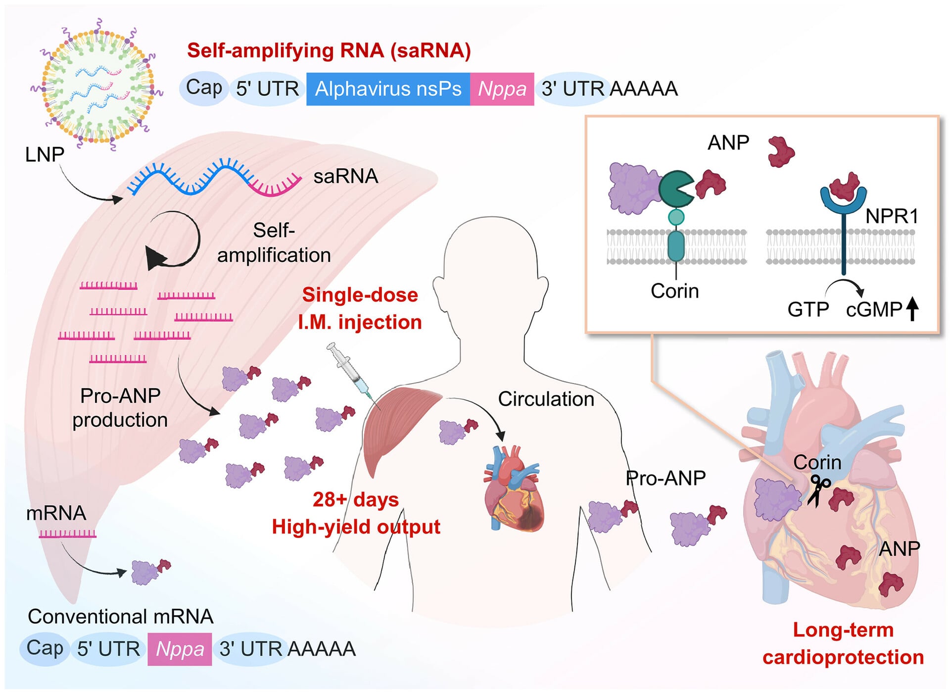 Single intramuscular injection of self-amplifying RNA of Nppa to treat myocardial infarction…