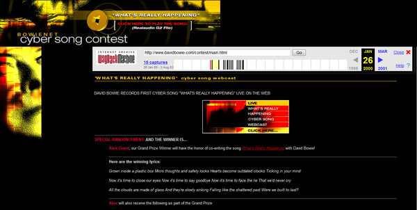 Όπως υπενθυμίζει το δημοσίευμα του BBC, o David Bowie είχε χρησιμοποιήσει το BowieNet για να δημιουργήσει το πρώτο "Cyber-song" στην ιστορία ζητώντας από τους συνδρομητές να συνδράμουν με στίχους τους. Και τότε, εν έτει 1999, τουλάχιστον 80.000 θαυμαστές είχαν στείλει στίχους για το "What's Really Happening?" το οποίο συμπεριλήφθηκε τελικά στο άλμπουμ του "Hours...".