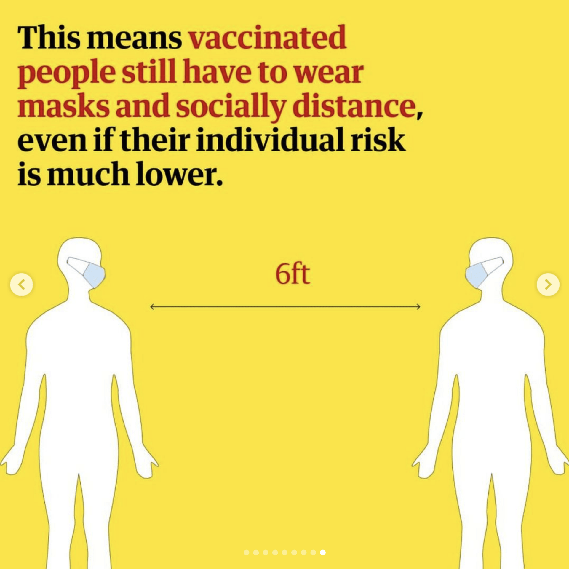 8. «Αυτό σημαίνει πως οι εμβολιασμένοι πολίτες θα πρέπει να φορούν μάσκες και να τηρούν αποστάσεις, ακόμα και αν το ατομικό τους ρίσκο είναι πολύ χαμηλότερο»