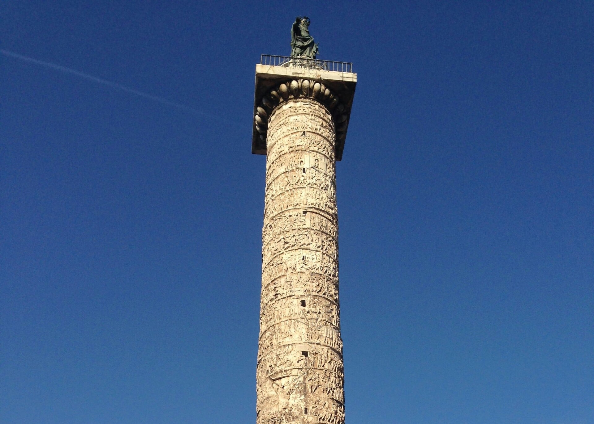Η στήλη, ύψους 47 μέτρων, ανεγέρθηκε μεταξύ 180 και 193 μ.Χ. και δεσπόζει στην πλατεία έξω από το κυβερνητικό μέγαρο της Ιταλίας. Το ανάγλυφό της ξετυλίγεται σπειροειδώς και αφηγείται με εντυπωσιακή λεπτομέρεια τις πολεμικές εκστρατείες του Ρωμαίου αυτοκράτορα, σε σκηνές ωμής βίας που δεν εξωραΐζουν τον πόλεμο: αιχμάλωτοι με δεμένα χέρια, αποκεφαλισμένοι εχθροί, γυναίκες με παιδιά να σύρονται από στρατιώτες.