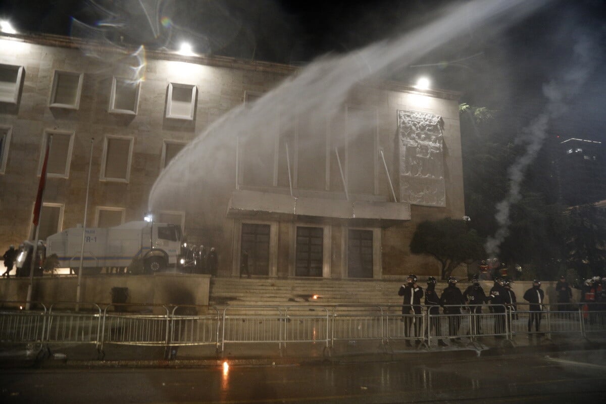 Οι διαδηλωτές συγκεντρώθηκαν κοντά σε κυβερνητικά κτίρια, φωνάζοντας συνθήματα κατά της κυβέρνησης του πρωθυπουργού Έντι Ράμα και ζητώντας την παραίτησή της.