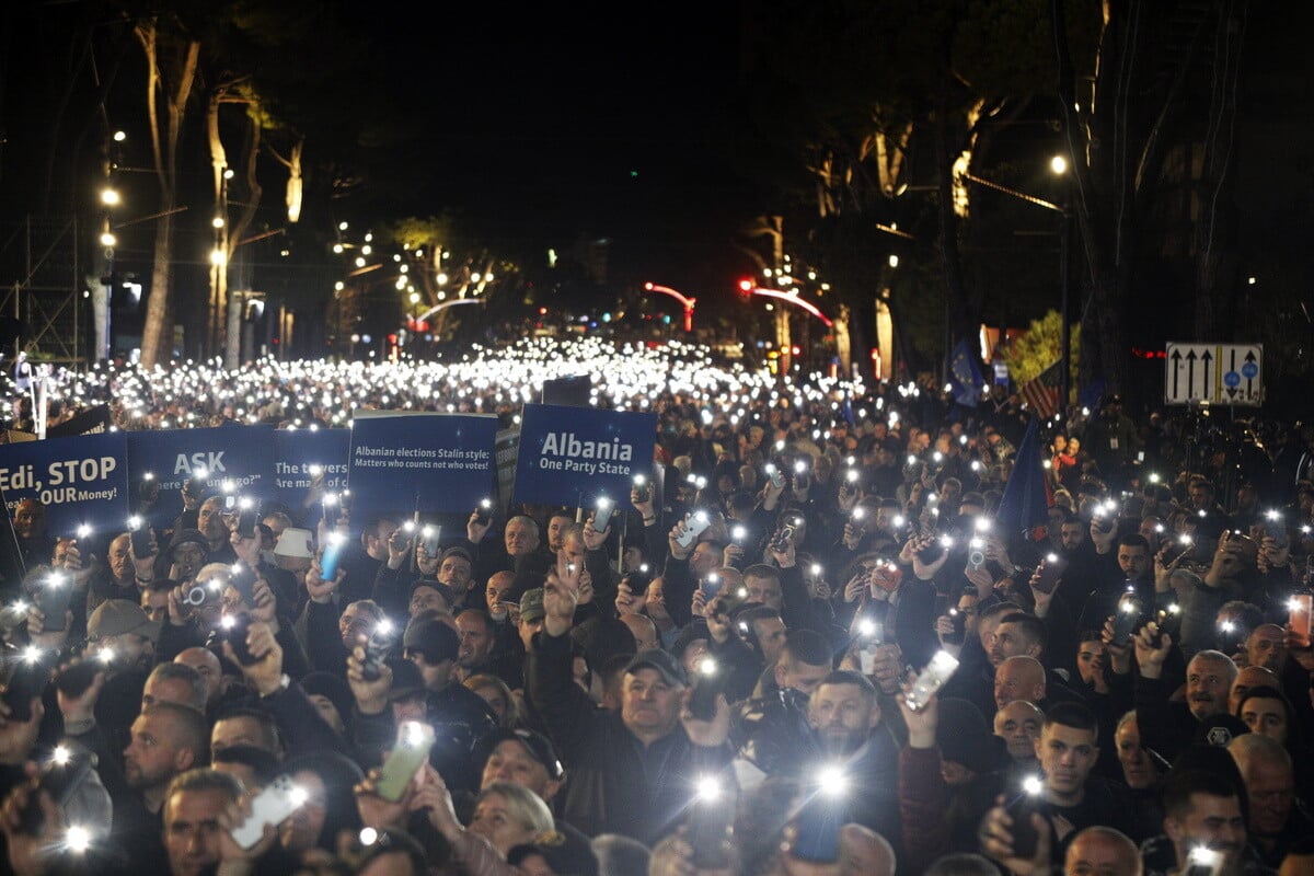 Χιλιάδες άνθρωποι βγήκαν στους δρόμους στα Τίρανα, το Σάββατο, σε αντικυβερνητική διαδήλωση που πυροδοτήθηκε από την απαγγελία κατηγοριών σε βάρος της αντιπροέδρου της κυβέρνησης, Μπελίντα Μπαλούκου, για φερόμενη διαφθορά που συνδέεται με μεγάλα έργα υποδομών.