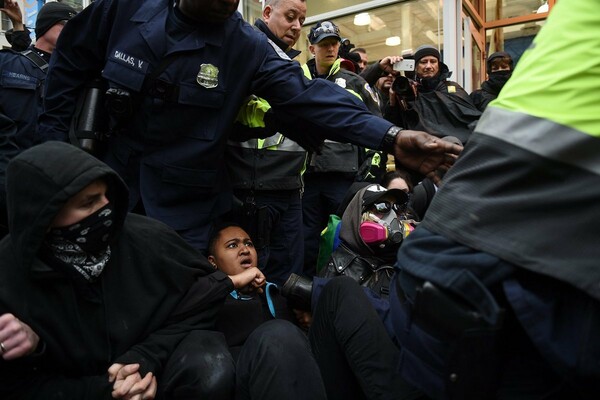 Οι χθεσινές διαδηλώσεις πραγματοποιήθηκαν λίγα τετράγωνα μακριά από την λεωφόρο Πενσιλβάνια, όπου ο Τραμπ συμμετείχε στην παραδοσιακή παρέλαση, που πραγματοποιείται μετά την ορκωμοσία των προέδρων, στη διαδρομή από το Καπιτώλιο ως τον Λευκό Οίκο.