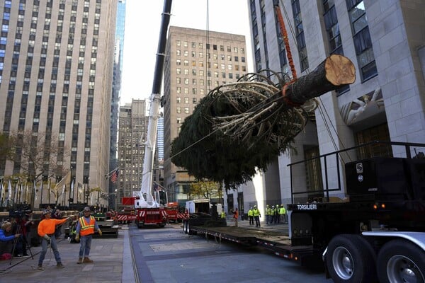 Η Νέα Υόρκη άρχισε να μπαίνει στο πνεύμα των Χριστουγέννων, με την άφιξη του τεράστιου δέντρου στο Rockefeller Center.
