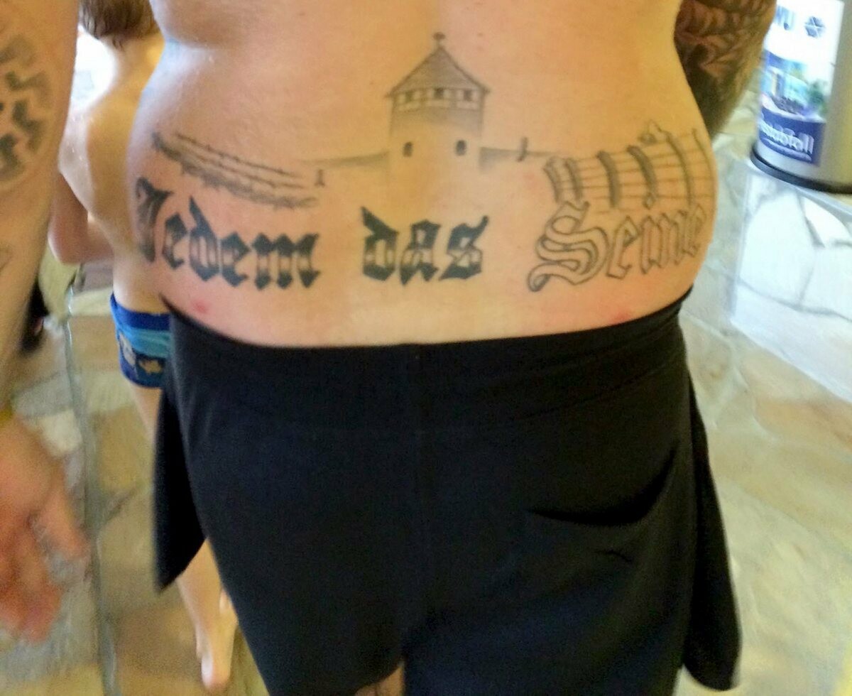 Στα τατουάζ του κατηγορούμενου εμφανίζονται απεικονίσεις του Αδόλφου Χίτλερ, αγκυλωτοί σταυροί, τα αρχικά των διαβόητων ναζιστικών ταγμάτων εφόδου "SS", αλλά και οι αριθμοί "18" και "88" που για τους ναζιστές σημαίνουν «Αδόλφος Χίτλερ» και «Χάιλ Χίτλερ» αντίστοιχα.