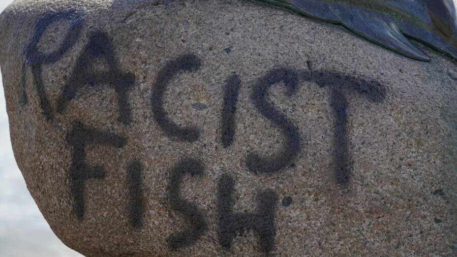 Τη φράση «ρατσιστικό ψάρι» γραμμένη στην βάση της Μικρής Γοργόνας, που βρίσκεται εδώ και 107 χρόνια στον βράχο απέναντι από το λιμάνι της Κοπεγχάγης, είδαν έκπληκτες σήμερα οι αστυνομικές αρχές.