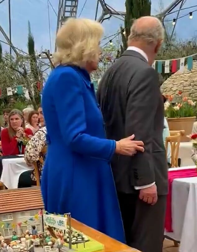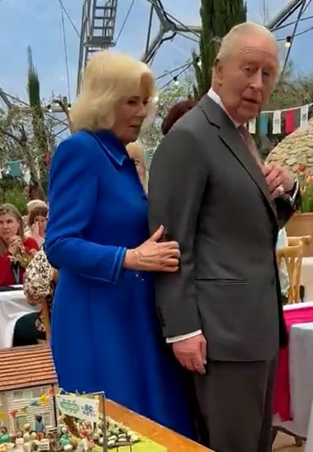 Κατά τη διάρκεια εκδήλωσης, ο βρετανός μονάρχης συνομιλούσε με παρευρισκόμενους, όταν η βασίλισσα Καμίλα προσπάθησε να του δείξει κάτι.