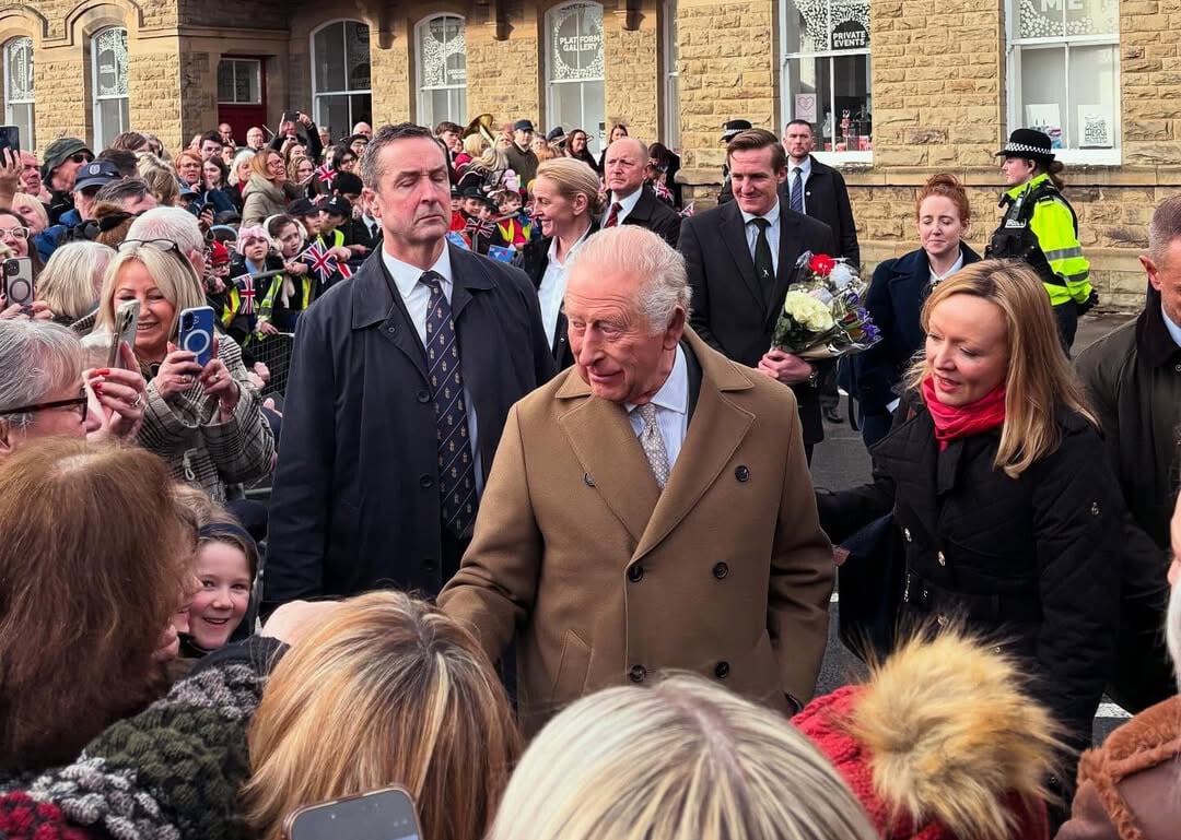 Στο σημείο είχαν συγκεντρωθεί οικογένειες, μαθητές και κάτοικοι της περιοχής, καθώς η επίσκεψη του βασιλιά σηματοδοτούσε την έναρξη μιας ολόκληρης ημέρας παρουσίας του στο Λάνκασαϊρ.