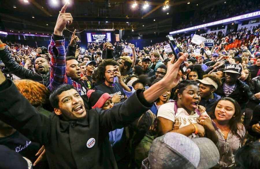 Διαδηλωτές, πολλοί μεταξύ αυτών υποστηρικτές του Μπέρνι Σάντερς και ακτιβιστές του αντιρατσιστικού κινήματος Black Lives Matter είχαν καταφέρει να συγκεντρωθούν μέσα στον αθλητικό χώρο του Πανεπιστημίου του Ιλινόι, στο Σικάγο, όπου ο επιχειρηματίας επρόκειτο να μιλήσει νωρίς το βράδυ, προφανώς απειλώντας να διαταράξουν τη διεξαγωγή της συγκέντρωσης.