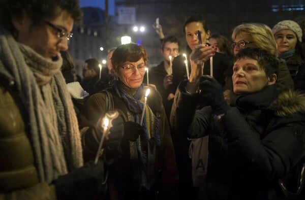 Πορείες και συγκεντρώσεις βρίσκονται σε εξέλιξη σε Γερμανία, Ιταλία, Ελβετία και Λονδίνο ενώ δεκάδες άνθρωποι έσπευσαν να αφήσουν λουλούδια και επιστολές στις εισόδους των γαλλικών πρεσβειών σε όλες τις χώρες.