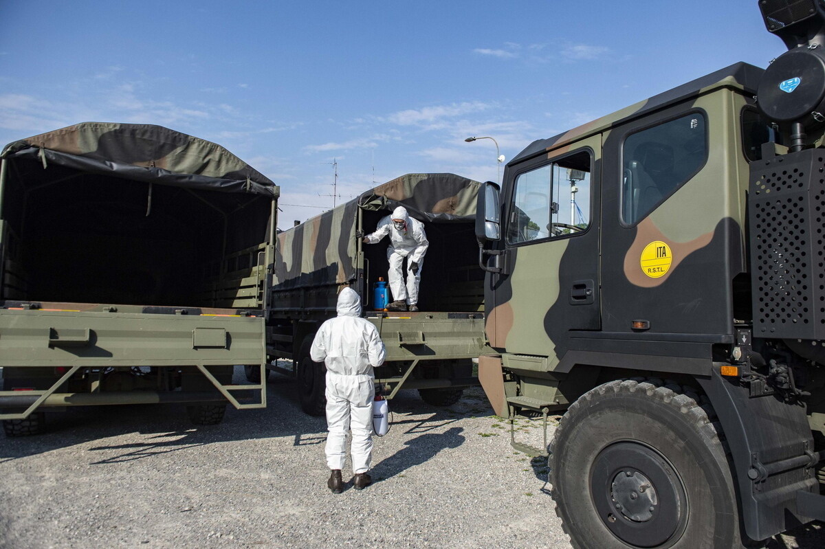 Σήμερα το πρωί, ένα κομβόι στρατιωτικών φορτηγών μετέφερε πέντε σορούς στην Τζεμόνα, στη γειτονική περιφέρεια Φριούλι Βενέτσια Τζούλια, κοντά στη Λομβαρδία, περιγράφει φωτορεπόρτερ του Γαλλικού Πρακτορείου.
