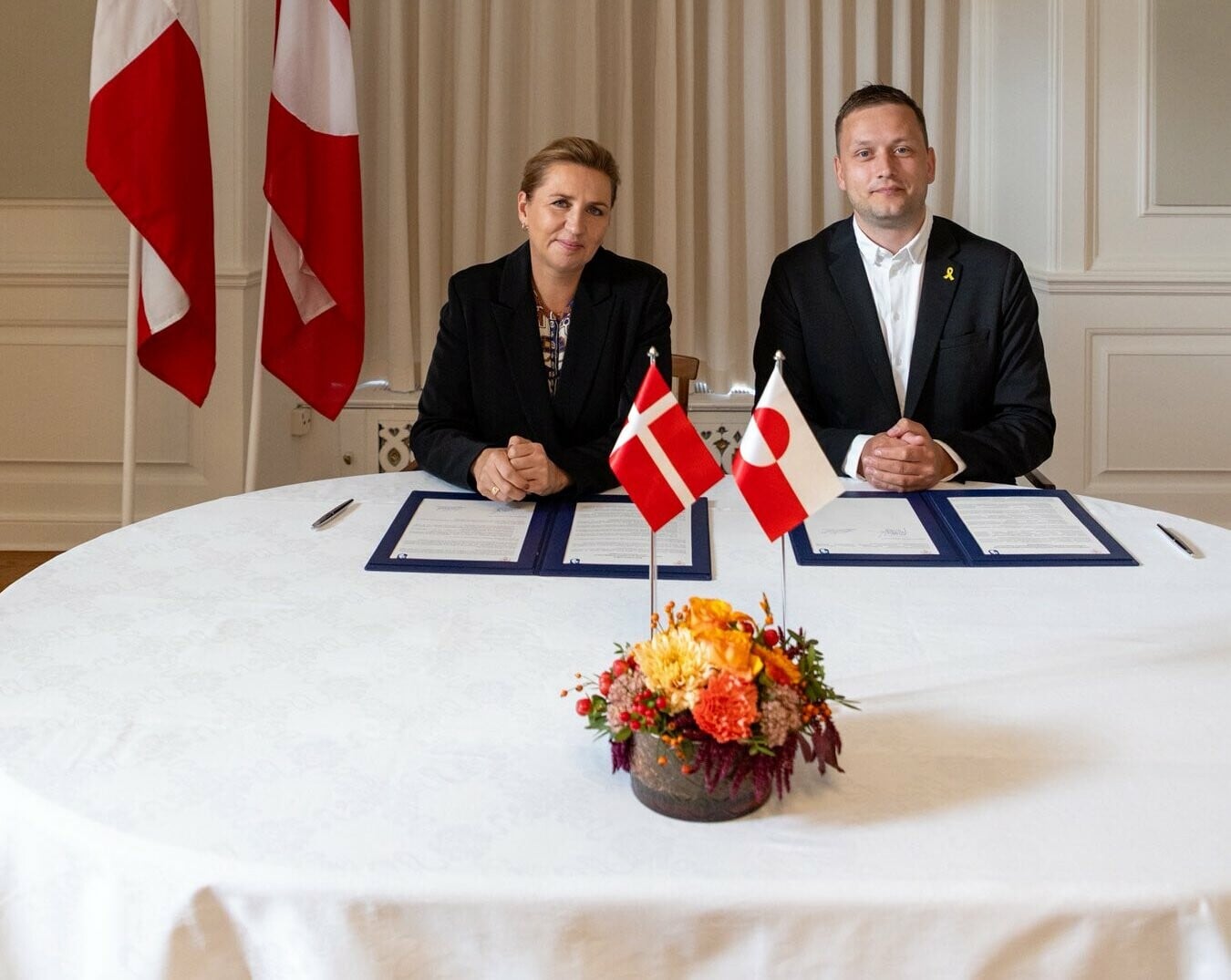 Η πρωθυπουργός της Δανίας Μέτε Φρέντερικσεν και ο πρωθυπουργός της Γροιλανδίας Γενς-Φρέντερικ Νίλσεν / Φωτ: Χ
