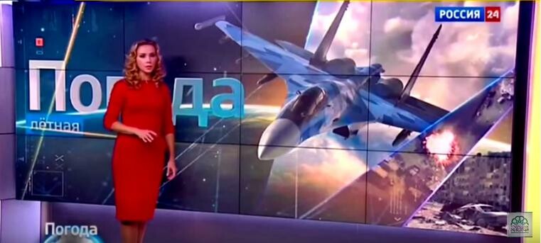 Τα ρωσικά μέσα ενημέρωσης αφιερώνουν μεγάλο μέρος της πρόγνωσης του καιρού στον άνεμο στη Συρία και το πώς θα μπορούσε ο καιρός να επηρεάσει τις ρωσικές αεροπορικές επιθέσεις. «Τώρα σε μία από τις πιο σημαντικές ιστορίες της εβδομάδας, οι πράξεις της Ρωσίας μπορούν να συνεχιστούν αφού οι ειδικοί λένε ότι οι καιρικές συνθήκες είναι ιδανικές γι 'αυτό», αναφωνεί η παρουσιάστρια. Πίσω της, στην οθόνη, αντί για σύννεφα, ήλιους και σταγόνες, είναι στημένο ένα πολεμικό σκηνικό με μαχητικά αεροσκάφη και βίντεο από τους ρωσικούς βομβαρδισμούς σε στόχους.