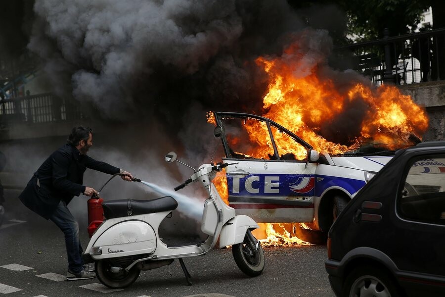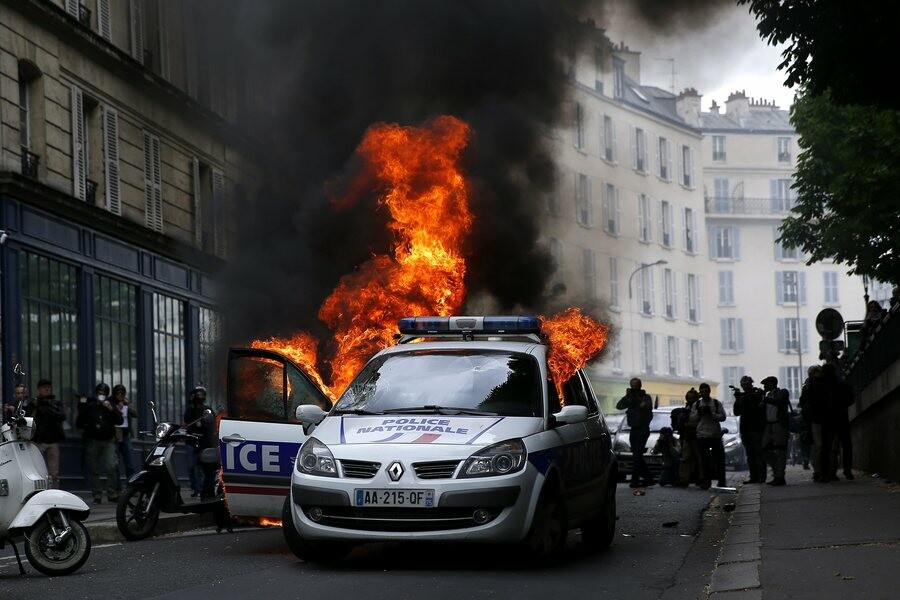 Ένα όχημα της αστυνομίας πυρπολήθηκε στο Παρίσι σήμερα από ένα εξοργισμένο πλήθος που το περικύκλωσε, σύμφωνα με αξιωματικούς της αστυνομίας και αυτόπτες μάρτυρες, καθώς η κατάσταση στη Γαλλία παραμένει τεταμένη, εν μέσω κατηγοριών περί αστυνομικής βαρβαρότητας εναντίον διαδηλωτών. Οι δύο αστυνομικοί που επέβαιναν στο αυτοκίνητο πρόλαβαν να το εγκαταλείψουν.
