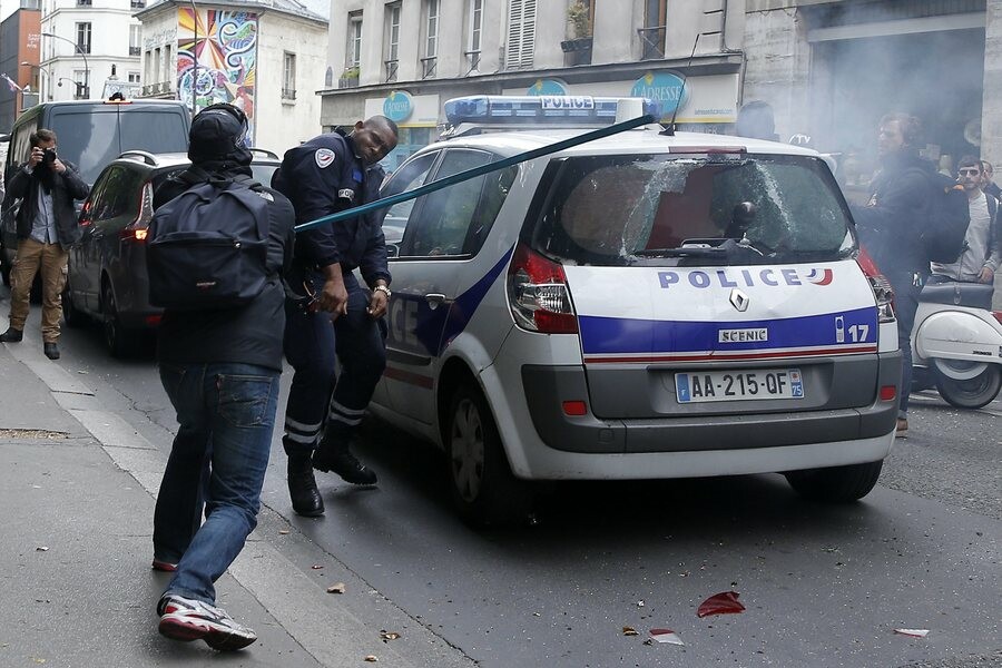Το επεισόδιο καταγράφηκε σε έναν κεντρικό δρόμο του Παρισιού, μερικές εκατοντάδες μέτρα από την Πλατεία της Δημοκρατίας, όπου είχαν συγκεντρωθεί πολλοί αστυνομικοί για να διαδηλώσουν σε ένδειξη διαμαρτυρίας για τις σχεδόν καθημερινές συγκρούσεις με βίαιες συμμορίες κουκουλοφόρων και μασκοφόρων, στο περιθώριο των κινητοποιήσεων εναντίον του νέου νόμου για τις εργασιακές σχέσεις.