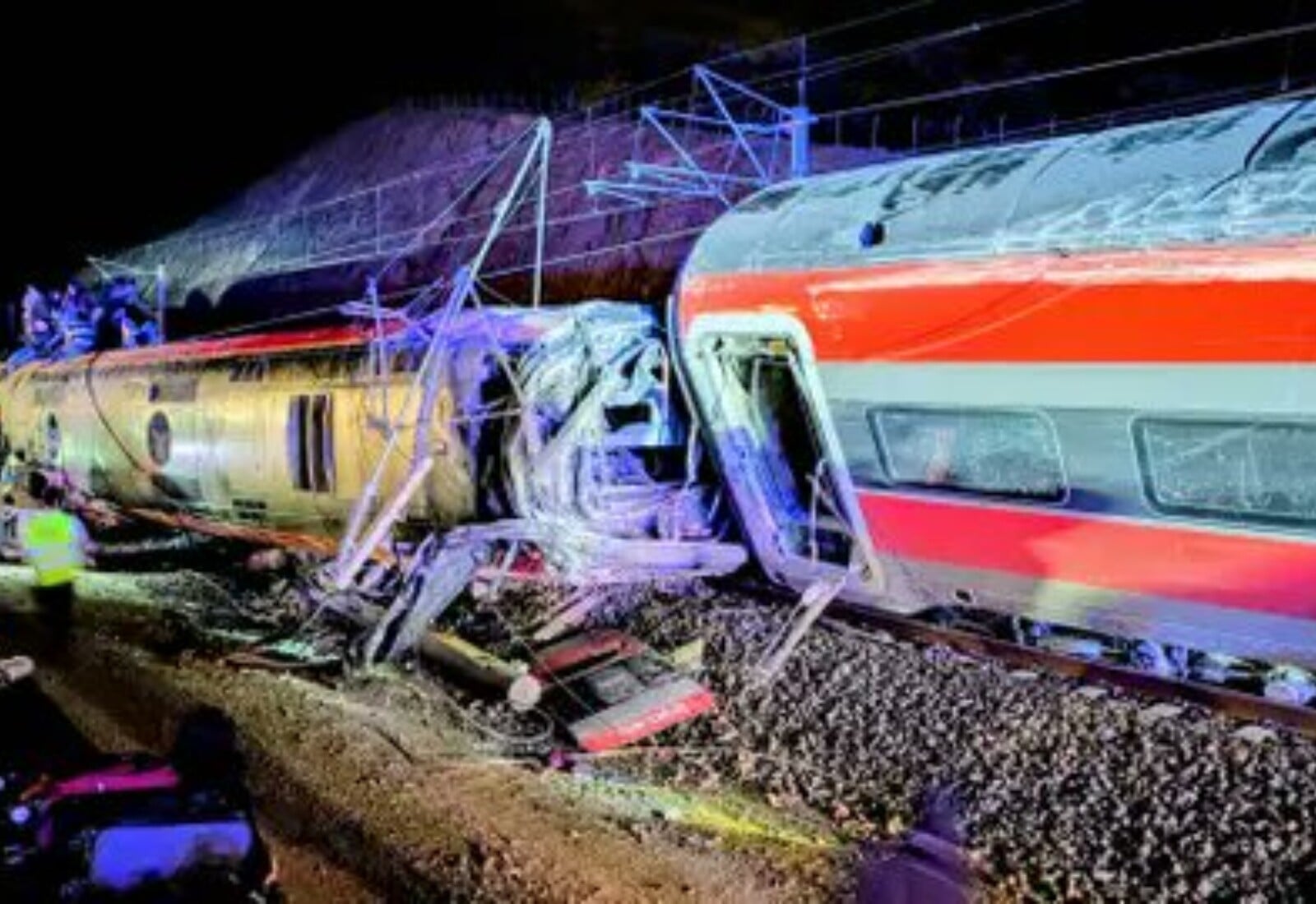 Η σφοδρότητα της σύγκρουσης των δυο τρένων, με εκατοντάδες επιβάτες, ήταν τέτοια που «τα δυο πρώτα βαγόνια του τρένου της Renfe εκτροχιάστηκαν», ανέφερε ο Πουέντε, τονίζοντας πως «η προτεραιότητα» αυτή τη στιγμή είναι «να εντοπιστούν τα θύματα».