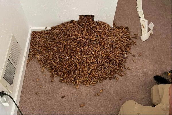 Όταν έσπασε τον τοίχο για να αφαιρέσει τους καρπούς, συνάντησε μια ατελείωτη ροή βελανιδιών να ξεχύνεται.