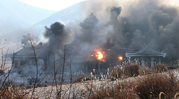 Φωτογραφίες από την «επίθεση» την οποία παρακολούθησε και ο ηγέτης του καθεστώτος Κιμ Γιοόνγκ Ουν, έδωσε στη δημοσιότητα το πρακτορείο ειδήσεων της Β. Κορέας KCNA.