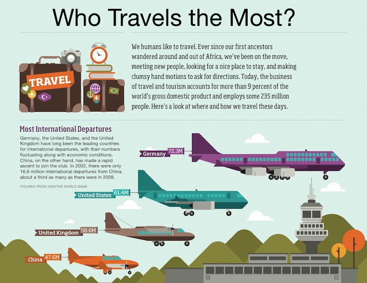 Παρακάτω μπορείτε να δείτε μερικά ενδιαφέροντα γραφήματα που δείχνει ποιοι ταξιδεύουν περισσότερο και ποιους διεθνείς προορισμούς προτιμούν.