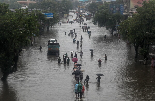 Κατακλυσμιαίες βροχές σαρώνουν από την Πέμπτη τις δυτικές ακτές της χώρας και οι μετεωρολογικές υπηρεσίες της Ινδίας προειδοποιούν για νέες ισχυρές βροχοπτώσεις τις επόμενες ημέρες.