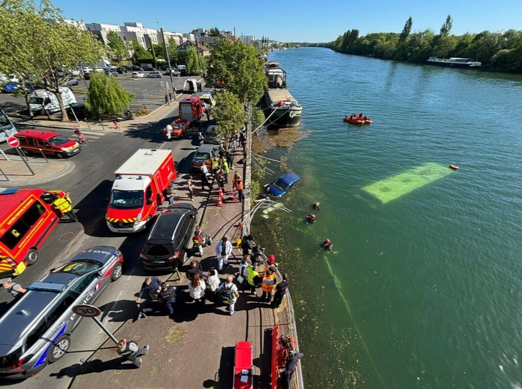 🇫🇷 Four people were rescued from the River Seine near Paris on Thursday after a bus driven by a trainee driver collided with a parked vehicle before plunging into the water, officials said.