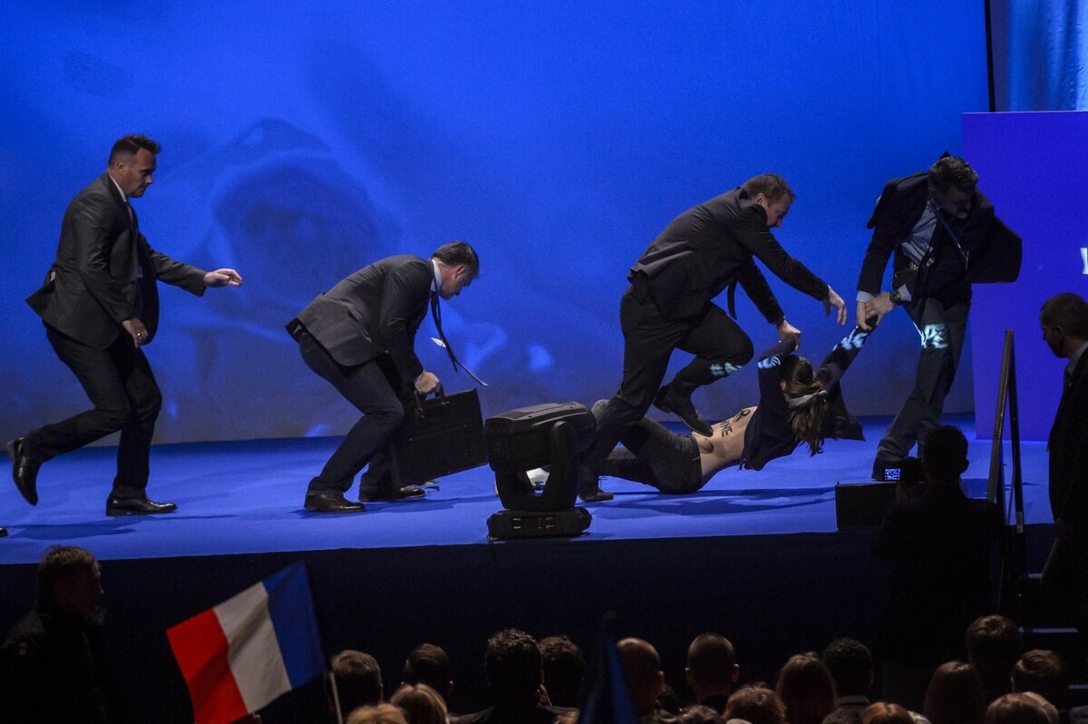 Επίσης, την ώρα που η Μαρίν Λεπέν εκφωνούσε την ομιλία της, μια νεαρή γυναίκα, μέλος του κινήματος Femen, πήδηξε στη σκηνή kai σήκωσε τη μπλούζα της. Ωστόσο Απομακρύνθηκε αμέσως από τους άνδρες ασφαλείας.