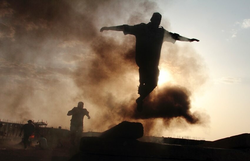 Το θέαμα μοιάζει απόκοσμο ή όπως σχολίασε το “Spiegel”, φαίνεται σα να κάνει κάποιος surfing σε ένα σύννεφο...Στην πραγματικότητα εξεγερμένοι της Λιβύης εκπαιδεύονται για να πάρουν μέρος σε έναν ήδη ξεχασμένο από τα Μ.Μ.Ε πόλεμο. Αποστάτες αξιωματικοί από τον στρατό του Καντάφι, διδάσκουν σε εξεγερμένους πως να δρούν σε συνθήκες πολέμου.