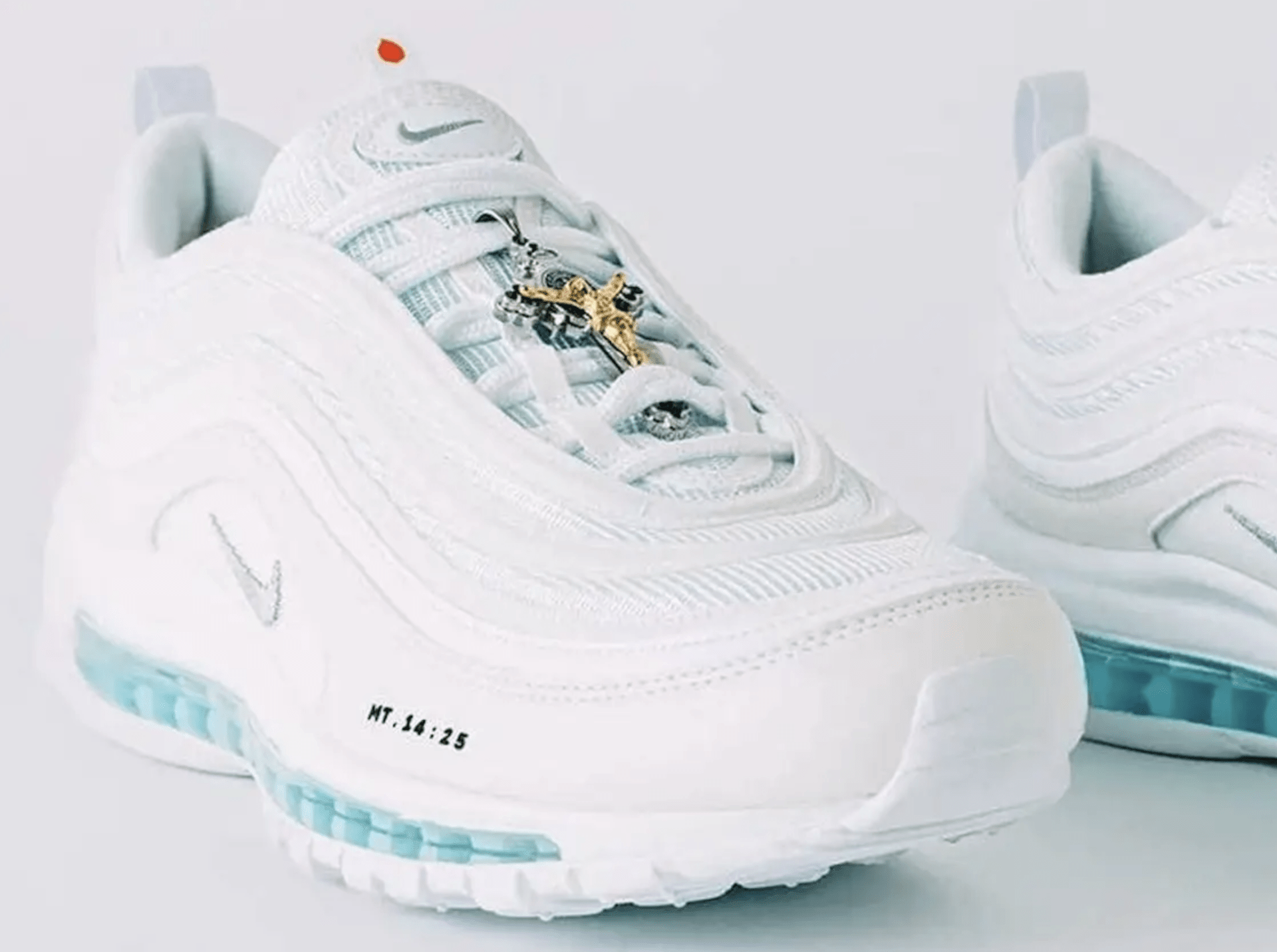 Αξίζει να σημειωθεί πως, σύμφωνα με το ρεπορτάζ, κατά το παρελθόν η MSCHF δεν είχε δεχτεί μήνυση από την Nike όταν είχε και πάλι μετατρέψει ζευγάρια Nike Air Max 97 σε «αθλητικά του Ιησού» με αγιασμό και σταυρούς στα κορδόνια. Στα καινούργια παπούτσια, ο σταυρός είναι αναποδογυρισμένος.