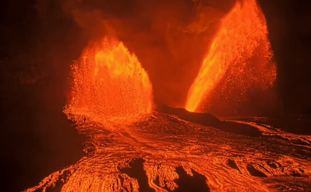 Το βίντεο από τη ζωντανή μετάδοση της Αμερικανικής Γεωλογικής Υπηρεσίας αλλά και δεκάδες βίντεο στην πλατφόρμα Χ, απαθανατίζει τη στιγμή που η λάβα εκτοξεύεται στον αέρα και να ρέει κατά μήκος του ηφαιστείου.