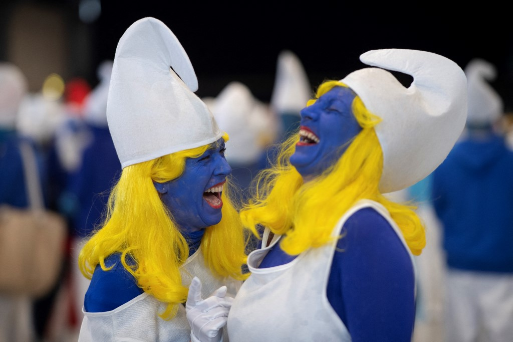 «Είναι μια επίδειξη για τη χαρά της ζωής», είπε χαμογελώντας η Κριστέλ Μερού, στο κομμωτήριό της οποίας όλοι οι υπάλληλοι ήταν μεταμφιεσμένοι στους διάσημους χαρακτήρες του Βέλγου δημιουργού Peyo (Pierre Culliford).