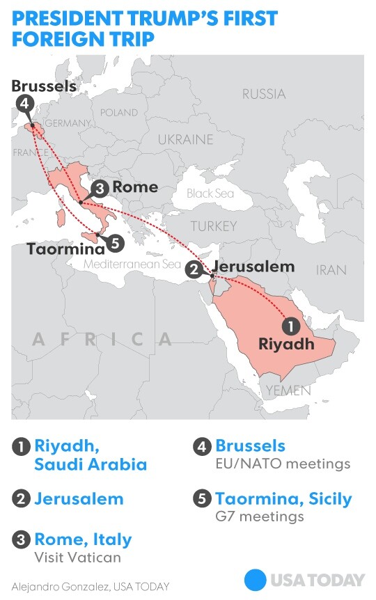 Ο Ντόναλντ Τραμπ θα έχει συνάντηση το απόγευμα με τον βασιλιά Σαλμάν, τον ανιψιό του, πρίγκιπα διάδοχο Μοχάμεντ μπιν Νάγεφ και τον γιο του μονάρχη, Μοχάμεντ μπιν Σαλμάν, ανερχόμενο αστέρι του σαουδαραβικού βασιλείου, με τους οποίους θα έχει συνομιλίες.