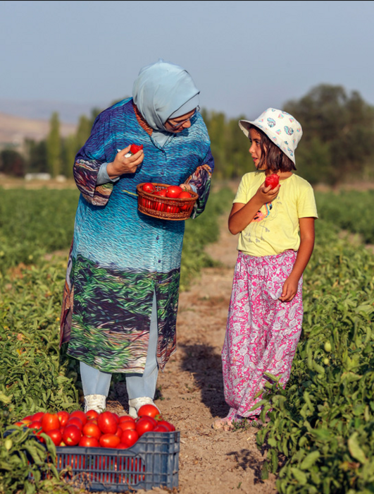 Η Εμινέ Ερντογάν πήγε σε χωράφι και μάζεψε ντομάτες, μαζί με αγρότισσες.