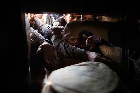 Χαλέπι, Συρία. Περιμένοντας για ψωμί έξω από ένα φούρνο. Από την Guardian.