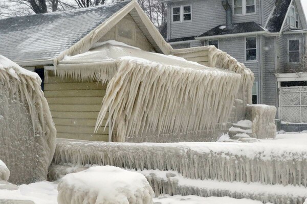 Εικόνα βγαλμένη από παραμύθι θυμίζει η όψη ενός σπιτιού, που βρίσκεται κοντά στη λίμνη Οντάριο των ΗΠΑ, το οποίο είναι καλυμμένο από πάγους και αμέτρητους σταλακτίτες.
