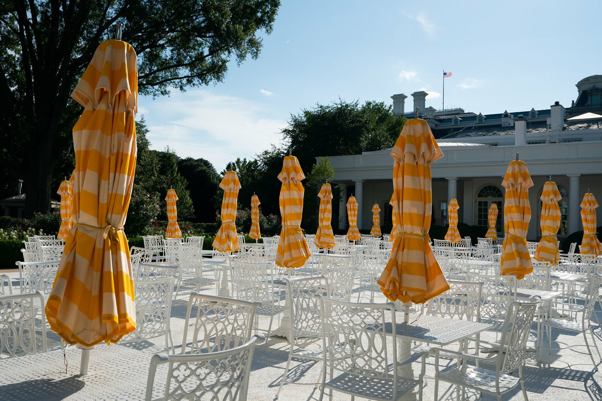 Το καλοκαίρι, ο Τραμπ μετέτρεψε τον Κήπο των Ρόδων σε πλακόστρωτο αίθριο με τραπέζια και ομπρέλες σε κίτρινο και λευκό, εμπνευσμένα κι αυτά από το Mar-a-Lago. Παρά τις αλλαγές, οι ροδιές παραμένουν – για την ώρα. Ο χώρος χρησιμοποιείται ήδη για πολιτικές εκδηλώσεις: πρόσφατα φιλοξένησε δείπνο Ρεπουμπλικανών βουλευτών και την απονομή, μετά θάνατον, του Μεταλλίου της Ελευθερίας στον ακτιβιστή Τσάρλι Κερκ. Ο Τραμπ μάλιστα αποκάλεσε τον νέο χώρο «Rose Garden Club».
