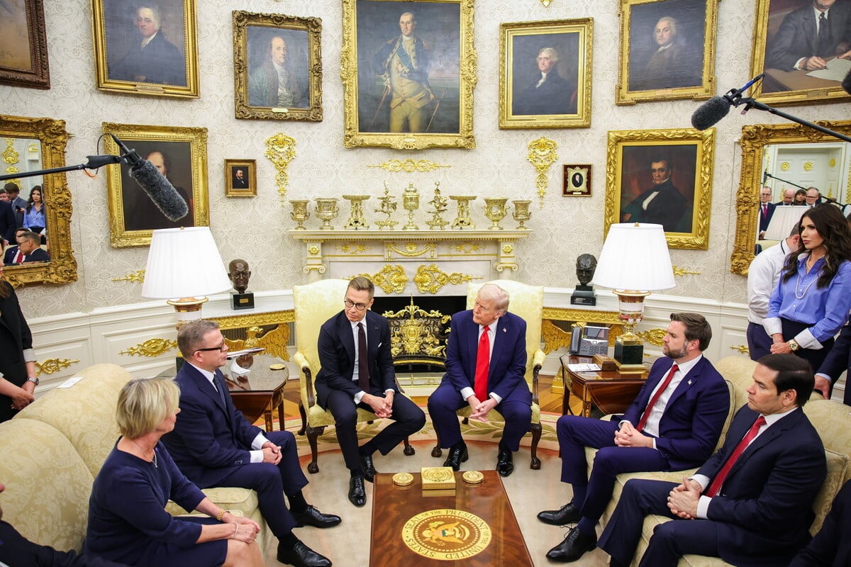 Η αγάπη του Τραμπ για το χρυσό κορυφώνεται στο Οβάλ Γραφείο, που πλέον θυμίζει περισσότερο παλάτι παρά γραφείο. Οι κορνίζες των πινάκων, οι καθρέφτες και ακόμη και το προεδρικό έμβλημα στο ταβάνι καλύφθηκαν με φύλλα χρυσού. Ο πρόεδρος συναντάται εκεί με ξένους ηγέτες, έχοντας ως φόντο μια μαντεμένια εστία διακοσμημένη με ιστορικά αντικείμενα – όλα με επιχρυσώσεις.