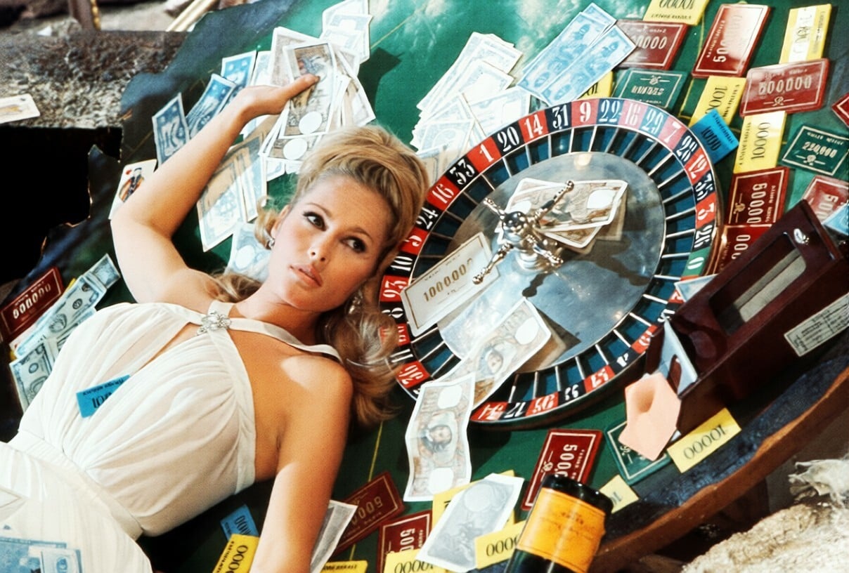 Η Ursula Andress έγινε παγκοσμίως γνωστή ως το πρώτο Bond girl στο Dr. No του 1962, με τη σκηνή όπου βγαίνει από τη θάλασσα με το λευκό μπικίνι να παραμένει μία από τις πιο αναγνωρίσιμες εικόνες στην ιστορία του franchise.