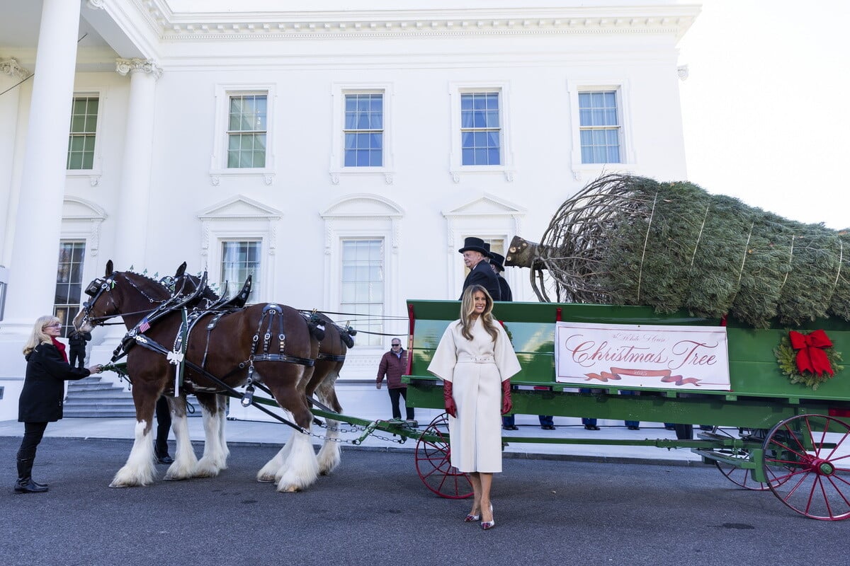 Η Πρώτη Κυρία των ΗΠΑ, Μελάνια Τραμπ, υποδέχθηκε τη Δευτέρα το φετινό επίσημο χριστουγεννιάτικο δέντρο του Λευκού Οίκου, ένα λευκό έλατο από φάρμα του Μίσιγκαν που έφτασε εντυπωσιακά με άμαξα στην είσοδο του North Portico.