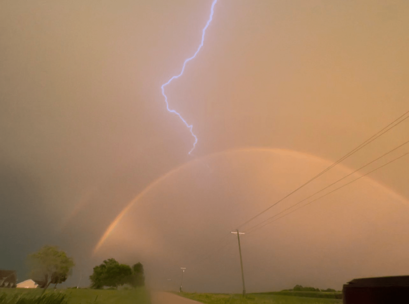 Έντονες καταιγίδες έχουν αναφερθεί σε περιοχές της πολιτείας της Αιόβα από τα τέλη Ιουλίου αλλά ένας οδηγός κατάφερε να απαθανατίσει με την κάμερά του μία μοναδική εικόνα: έναν κεραυνό μέσα σε ουράνιο τόξο.