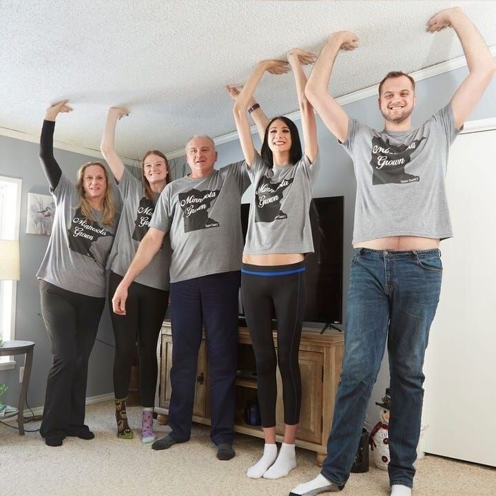 «Μου αρέσει να λέω ότι είμαι ο πιο κοντός στην πιο ψηλή οικογένεια του κόσμου με ύψος 191,2 εκατοστά!» αστειεύεται η Κριστίν, ενώ όλοι συμφωνούν πως είναι πανεύκολο να τους ξεχωρίσει κανείς στο πλήθος. «Απλώς κοιτάξτε ψηλά», λένε.