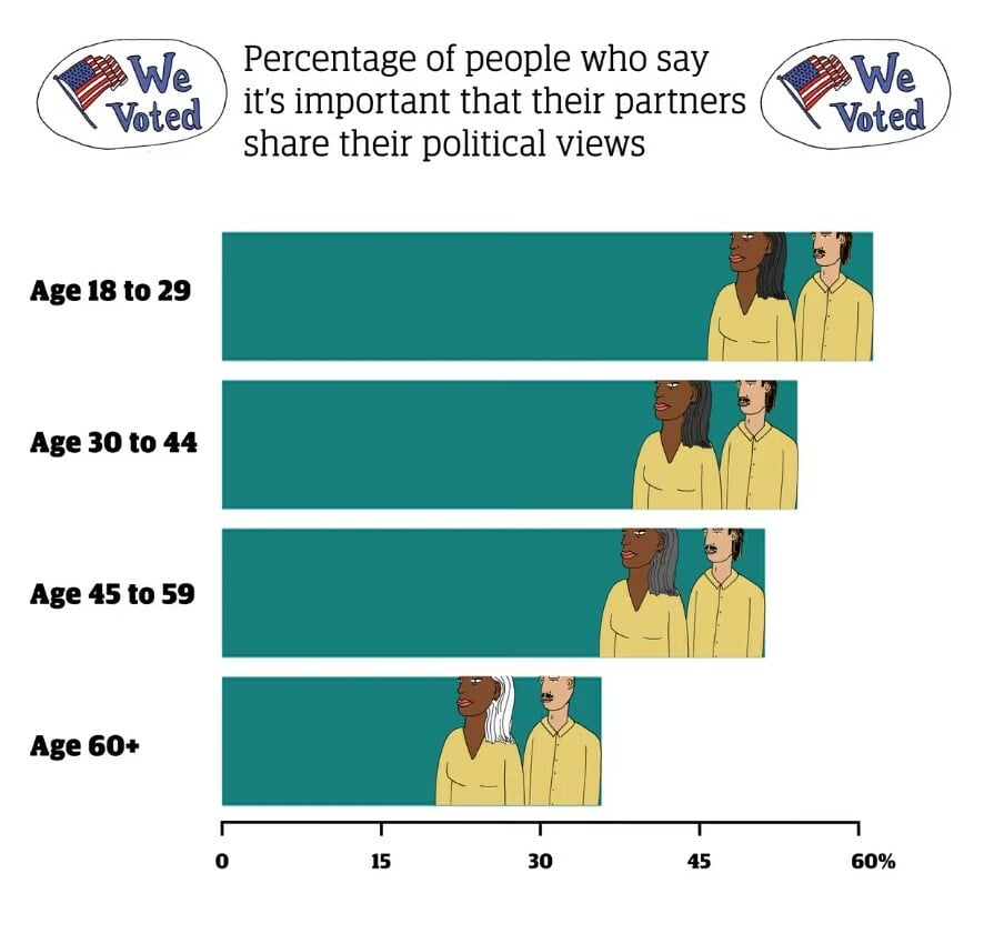 Δεν θέλουν να βγαίνουν ραντεβού πέρα από το πολιτικό χάσμα: Η διαίρεση των φύλων της Gen Ζ ανάλογα με τις πολιτικές τους απόψεις μπορεί να επηρεάζει τους στόχους για τη σχέση και τον γάμο, περισσότερο από ό,τι συνέβαινε στις παλαιότερες γενιές.