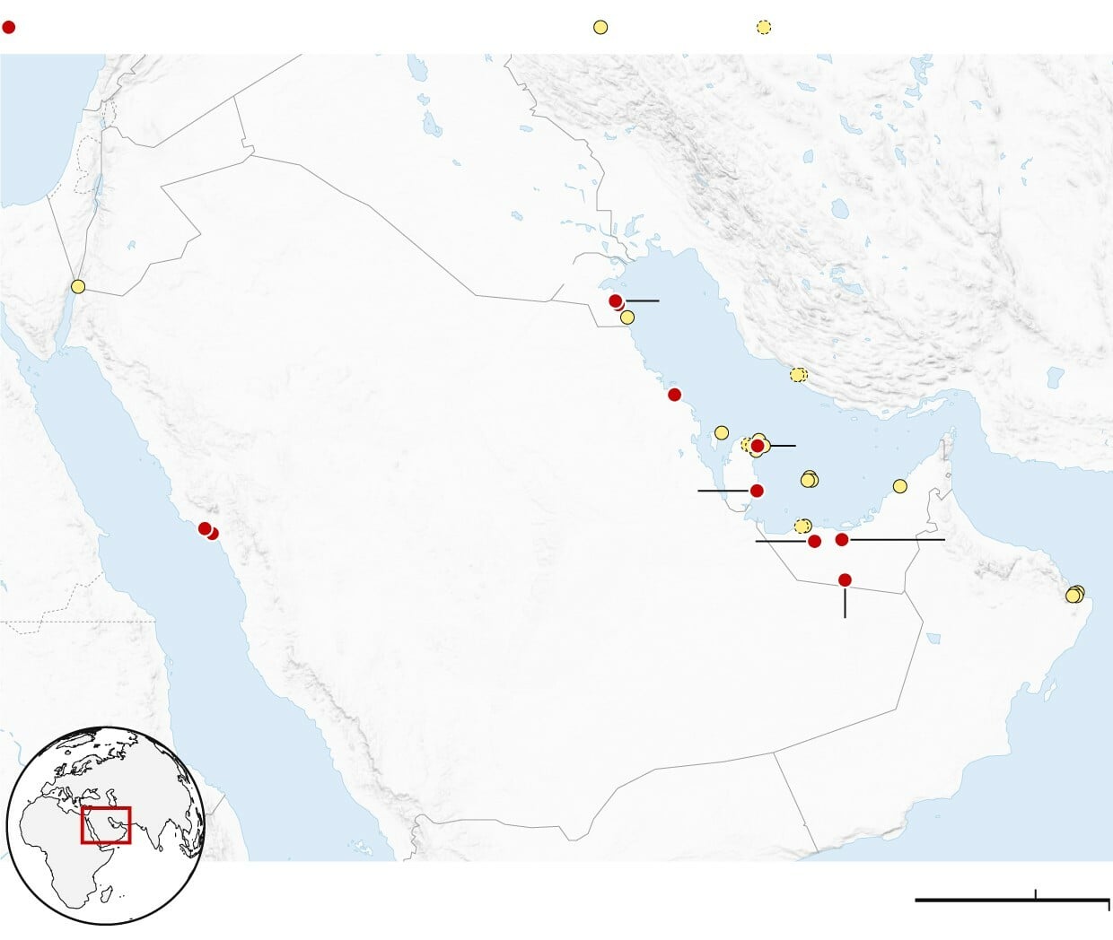 Ανάμεσά τους περιλαμβάνονται σημαντικά διυλιστήρια και πεδία φυσικού αερίου, όπως το Samref στη Σαουδική Αραβία και το κοίτασμα al-Hosn στα ΗΑΕ. Επιθέσεις με drones και πυραύλους έχουν ήδη καταγραφεί σε αρκετές από αυτές τις εγκαταστάσεις, προκαλώντας πυρκαγιές και διακοπές λειτουργίας.
