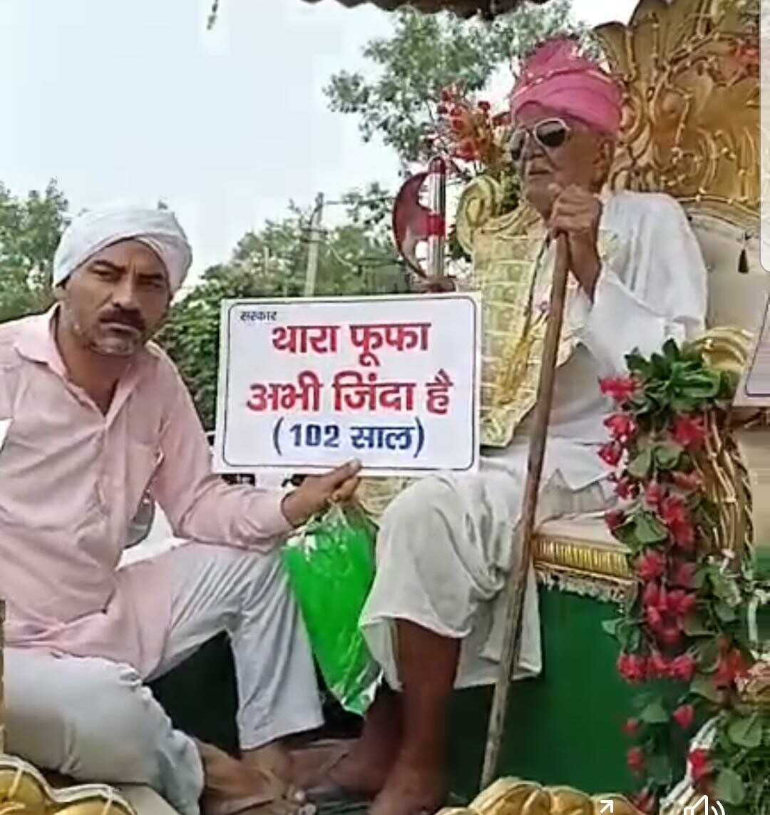 102 year old man Duli Chand in Haryana's Rohtak who was declared dead in govt records and his pension was stopped. Today he came out on the roads to prove he is alive. @ndtv pic.twitter.com/PwfJ5ypf6r