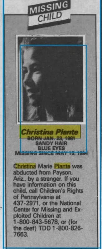 Η Κριστίνα Μαρί Πλάντε, που είναι σήμερα 44 ετών και έχει διαφορετικό όνομα, δήλωσε σε ερευνητές ότι δεν είχε απαχθεί, αλλά είχε φύγει από το σπίτι της με τη βοήθεια μελών της οικογένειάς της.