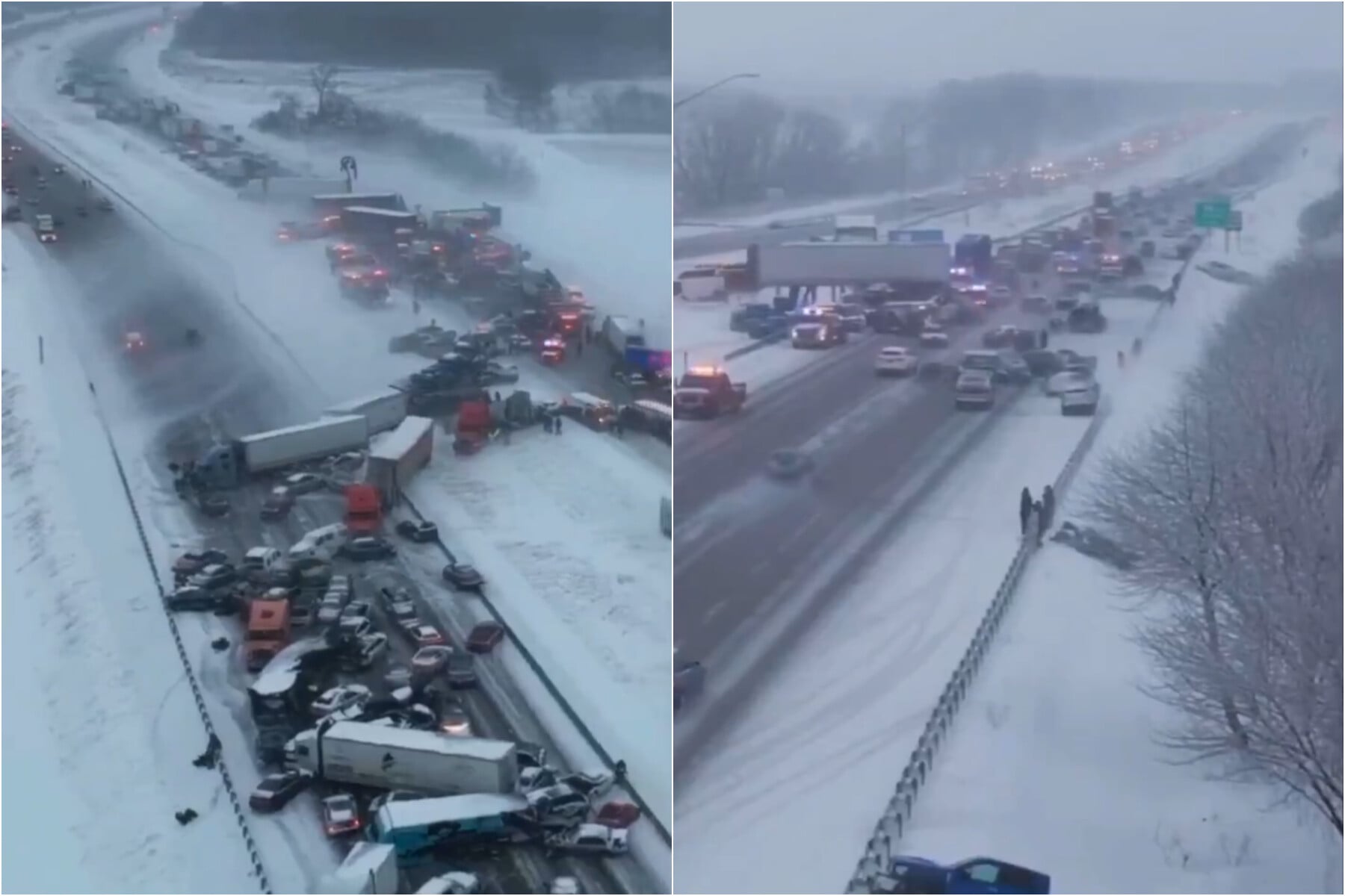 A major pileup occurred on a highway in Indiana after heavy snowfall. Visibility dropped almost instantly, causing vehicles to slam into one another.